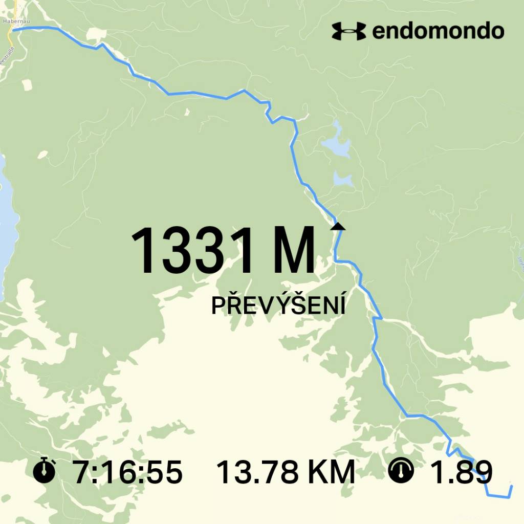 Celková doba chůze celého třídenního výšlapu – sečteno podle aplikace Endomondo je 17,71 hodin.